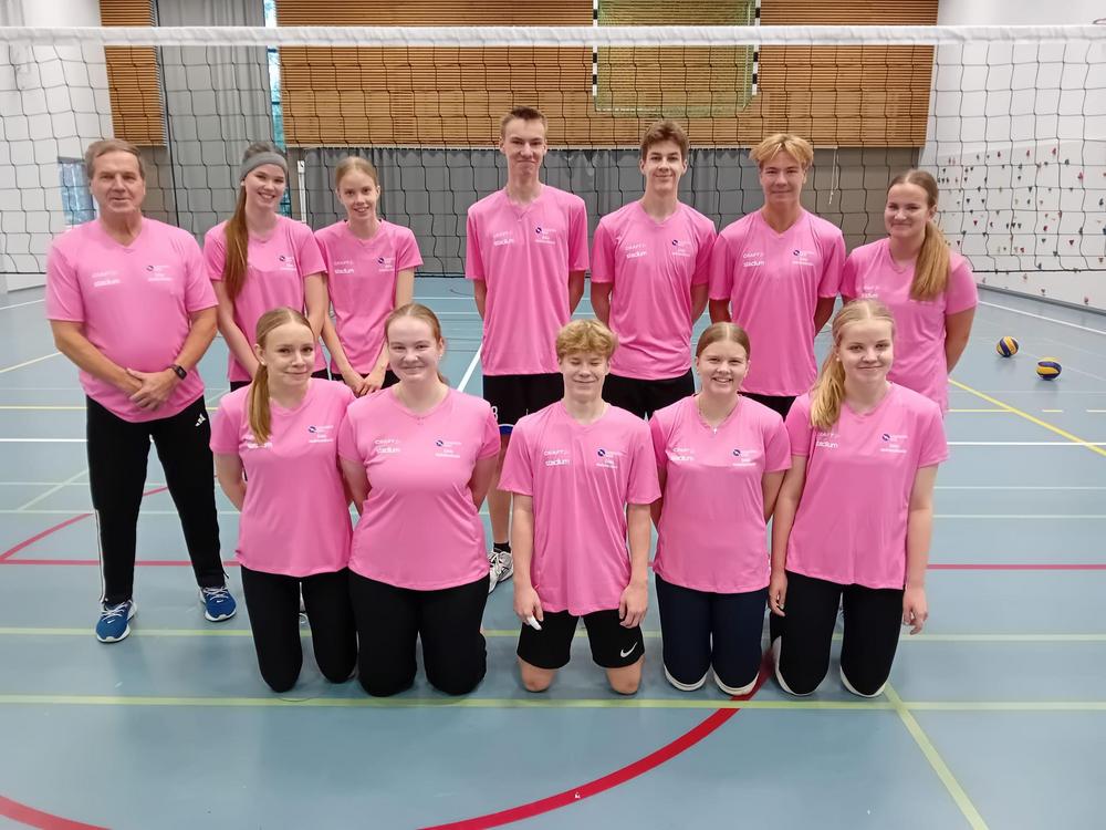 Kuvassa Lempäälän lukion lentopallojoukkue uusissa hienoissa pelipaidoissaan!