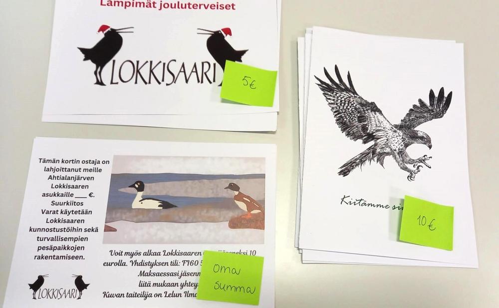 Voit tukea Lokkisaaren kunnostustöitä ja turvallisempien pesäpaikkojen rakentamista ostamalla joulukortteja, lahjakortteja tai ryhtymällä Lokkisaari ry:n vuosijäseneksi.